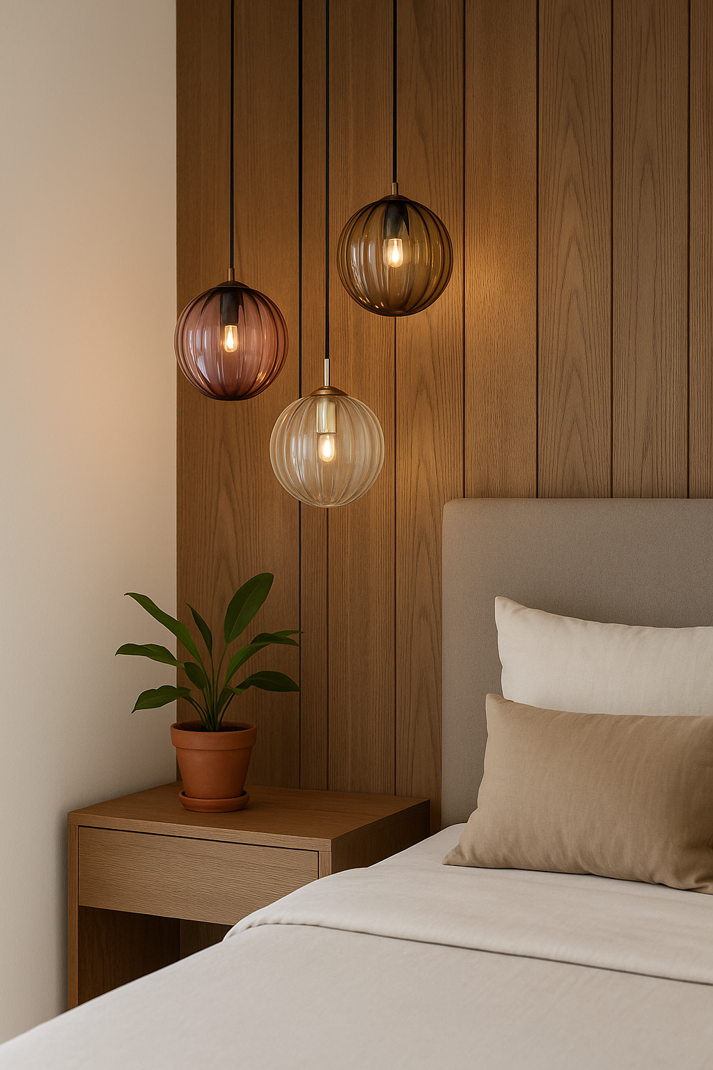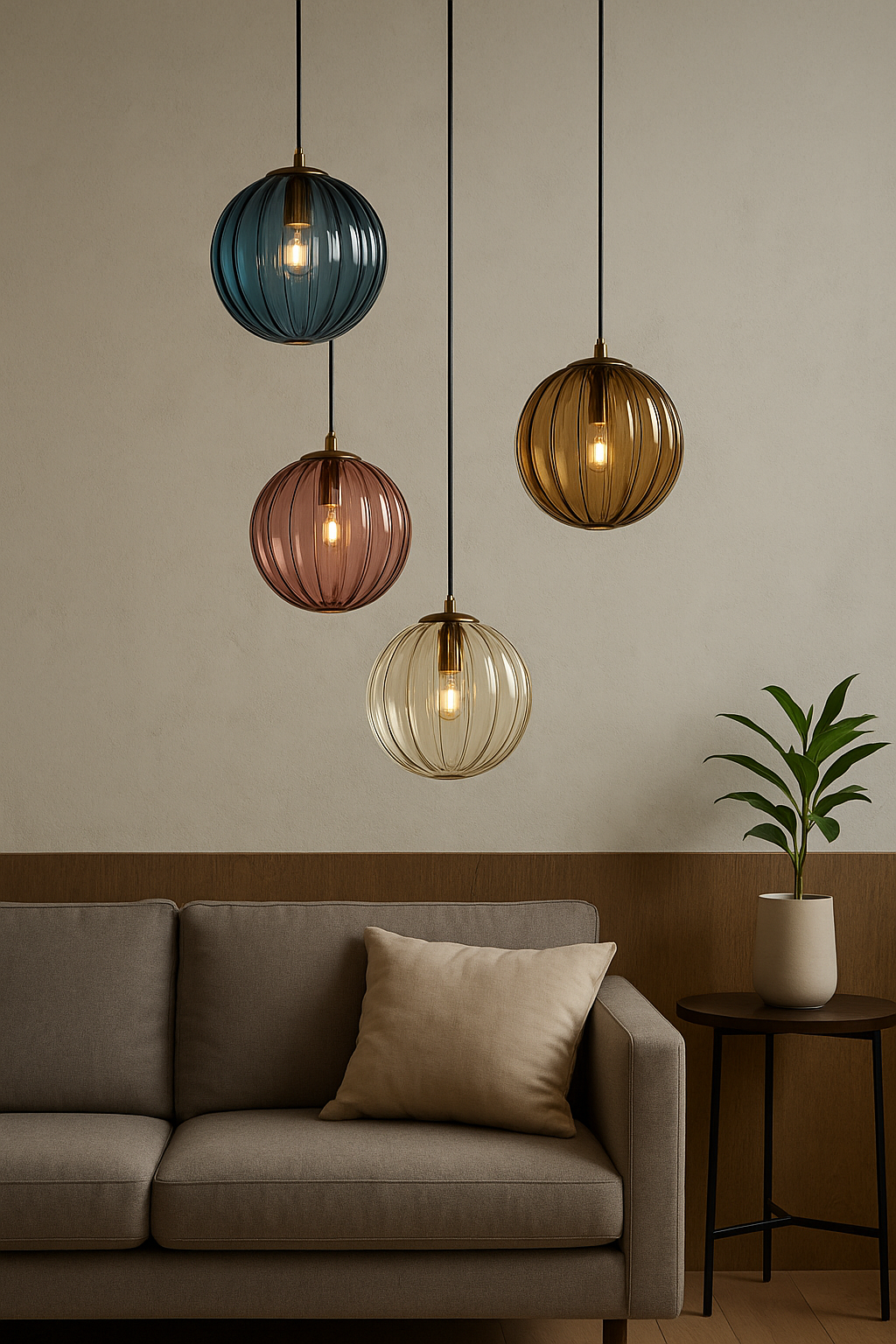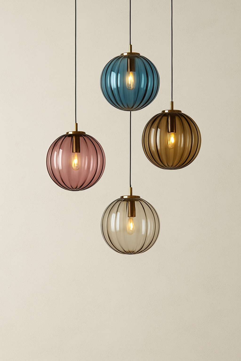 Approx. Ø18–22 cm (typical size for spherical ribbed pendants of this style — can be adjusted if you have exact size)
